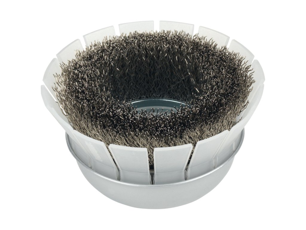 Hrncové kartáče PREMIUM SHIELD pro úhlové brusky nabízejí díky průhledné ochraně maximální bezpečnost a účinnost při práci s nerezovou ocelí, INOX. Složení drátu z vysoce kvalitní nerezové oceli, INOX, zabraňuje rezavění obrobku. Tento nástroj je k dispozici v různých provedeních. Zatímco provedení s uzlovým drátem (DW) je předurčeno pro měkké, citlivé materiály a lehké nečistoty, drátěné kartáče s uzlovým drátem (DZ) jsou vhodné pro těžkou práci, silné znečištění a pro odstraňování barev a laků.