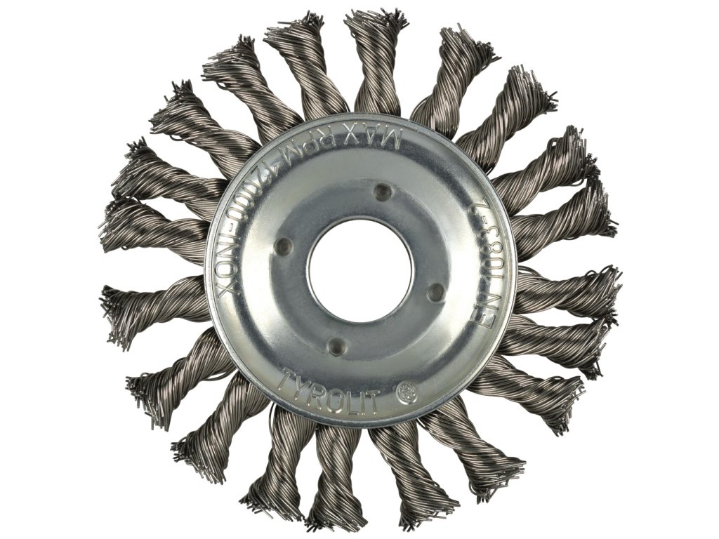 Kulatý kartáč PREMIUM pro úhlové brusky je ideální pro obrábění nerezové oceli, INOX. Zatočený drátěný kartáč boduje vysokou trvanlivostí a lze jej použít k odebírání rzi, barev, laků, okují a betonových zbytků i k přípravě povrchu a jemnému obrábění oceli. Drátěné kartáče jsou vyrobeny z vysoce kvalitní nerezové oceli, která dlouhodobě zabraňuje rezivění obrobku. Tento nástroj je také ideální pro obrábění svarů.