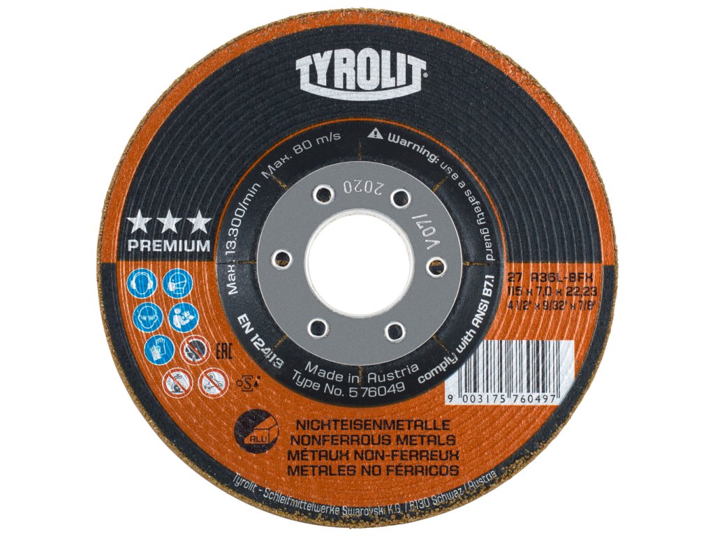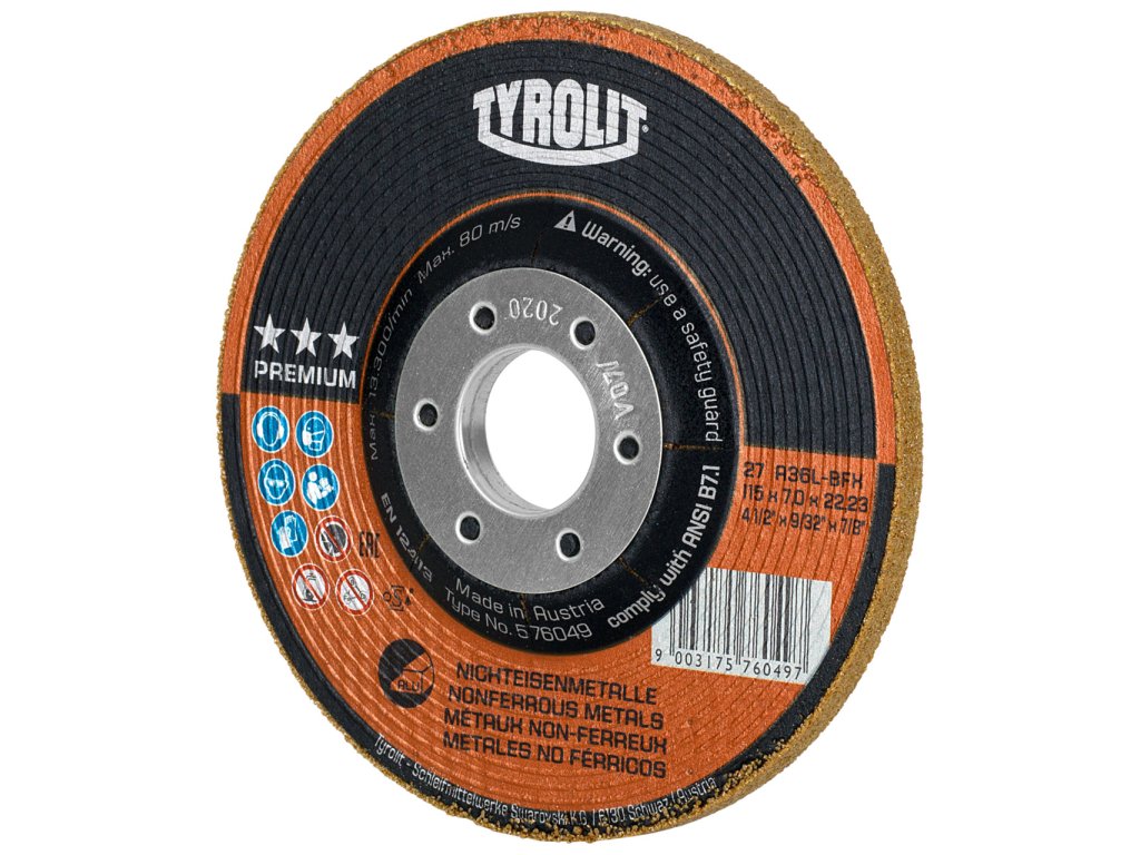"Talířový brusný kotouč PREMIUM na neželezné kovy dosahuje díky vlastnímu složení a způsobu použití společnosti Tyrolit nejlepších výsledků při každodenním broušení. Zabraňuje přimazávání nástroje, čímž se snižuje jeho zanášení nebo otupení. I při velmi nízkém brusném přítlaku dosahuje kotouč velmi vysoké agresivity, což umožňuje dosáhnout lepších výsledků s menší námahou v co nejkratším čase.
