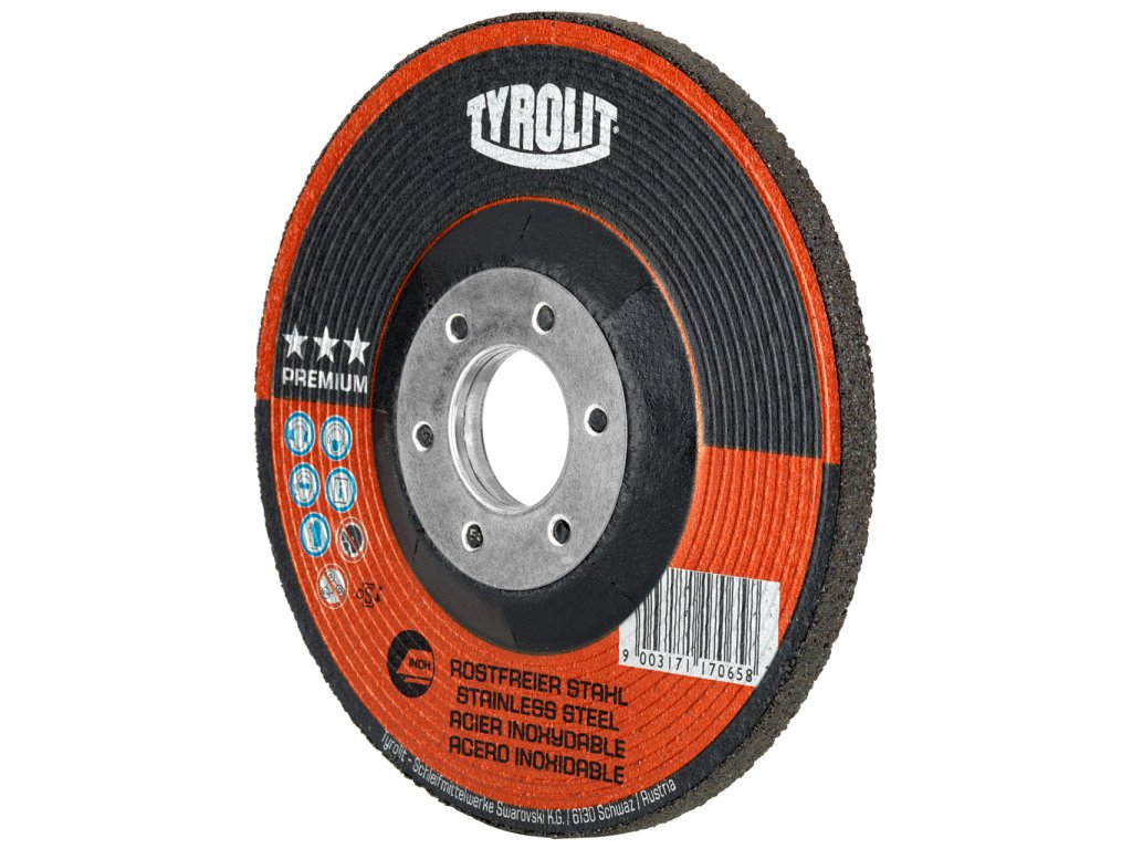 Talířový brusný kotouč PREMIUM pro úhlové brusky je dokonalým nástrojem pro účinné a řezatelné broušení nerezové oceli. Speciální pojivový systém přivádí vynikající agresivitu a vysokou odolnost při použití. Chemická čistota výrobku zabraňuje vzniku koroze a důlkové koroze a umožňuje šetrné zacházení s obrobkem. Speciálně vyvinutá technologie "Comfort Start" společnosti Tyrolit navíc zajišťuje příjemný start při broušení, což mnohonásobně zvyšuje pracovní komfort obsluhy. Brusný kotouč PREMIUM je ideální pro rychlé a výkonné dokončení širokého rozsahu použití na různých druzích nerezové oceli, INOX.