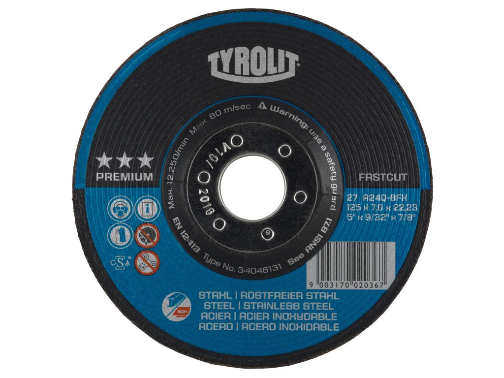 Talířový brusný kotouč PREMIUM FASTCUT pro úhlové brusky byl jednoznačně optimalizován pro řezivost a vysokou rychlost řezání. Toho je dosaženo především díky speciálně vyvinuté technologii FASTCUT společnosti Tyrolit. To, co činí tento talířový brusný kotouč tak jedinečným, je zkosená a definovaná hrana nástroje "Comfort Start". Ta poskytuje obsluhující osobě pohodlný start při broušení a mnohonásobně zvyšuje pracovní komfort. Díky tomu se tento nástroj vyznačuje maximálním komfortem ve spojení s dobrou životností a lze jej univerzálně používat pro celou řadu broušení oceli a nerezové oceli.Dodatočné parametre