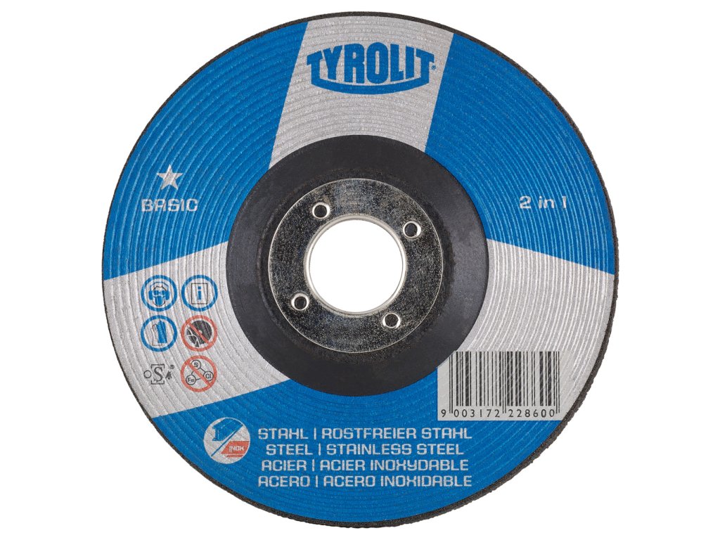 Talířový brusný kotouč BASIC 2v1 pro úhlové brusky je ideální pro rychlé a pohodlné brousicí práce. Jedinečnost tohoto talířového brusného kotouče spočívá ve zkoseném a definovaném okraji nástroje "Comfort Start". Ta poskytuje obsluhující osobě pohodlný start při broušení a mnohonásobně zvyšuje pracovní komfort. Tento kotouč lze univerzálně použít k broušení čelních ploch a hran na různých druzích oceli a nerezové oceli a neměl by chybět v žádné sadě nářadí.