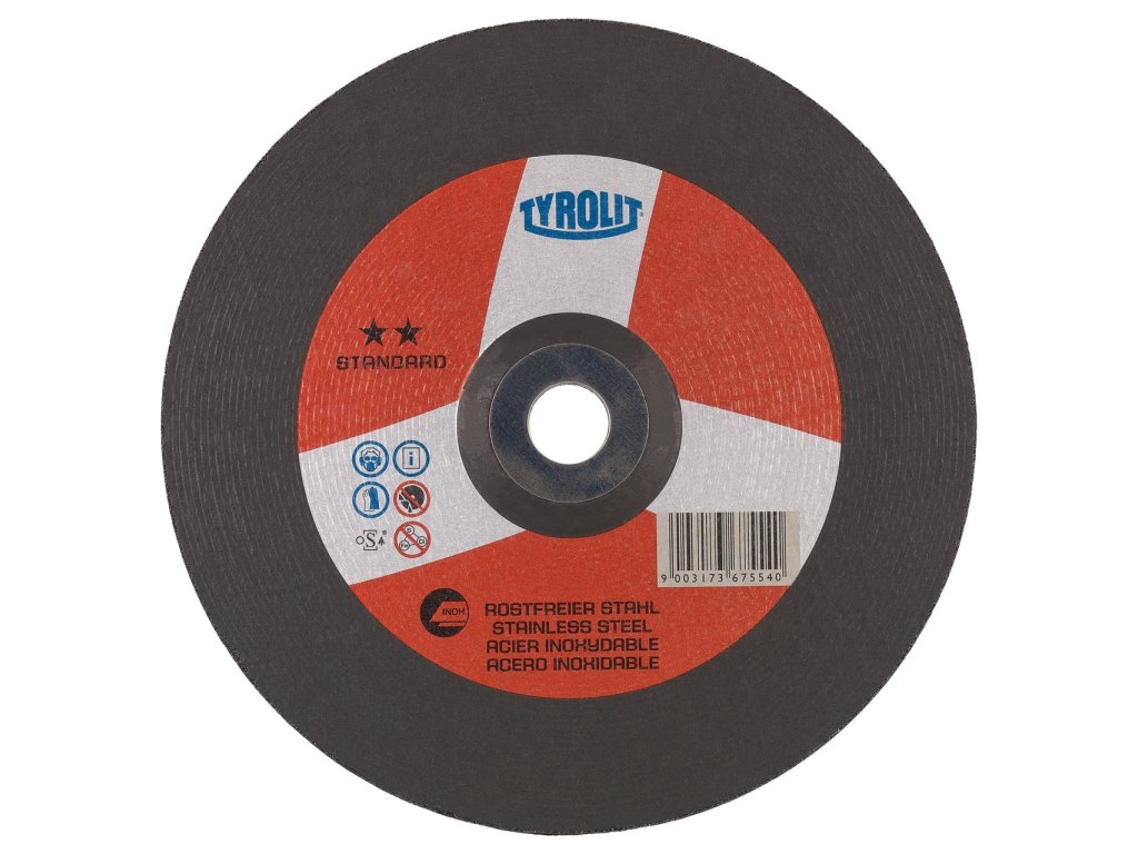 "Výkonný talířový brusný kotouč INOX je speciálně navržen pro použití s nerezovou ocelí, kombinuje dlouhou životnost s vysokou řezivostí. Toho je dosaženo použitím normálního korundu.
