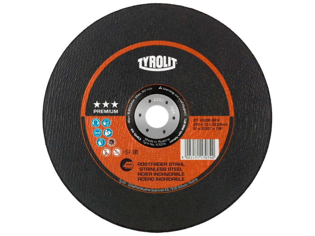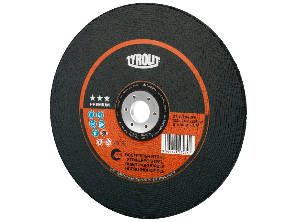 Talířový brusný kotouč PREMIUM pro úhlové brusky je dokonalým nástrojem pro účinné a řezatelné broušení nerezové oceli. Speciální pojivový systém přivádí vynikající agresivitu a vysokou odolnost při použití. Chemická čistota výrobku zabraňuje vzniku koroze a důlkové koroze a umožňuje šetrné zacházení s obrobkem. Speciálně vyvinutá technologie "Comfort Start" společnosti Tyrolit navíc zajišťuje příjemný start při broušení, což mnohonásobně zvyšuje pracovní komfort obsluhy. Brusný kotouč PREMIUM je ideální pro rychlé a výkonné dokončení širokého rozsahu použití na různých druzích nerezové oceli, INOX.