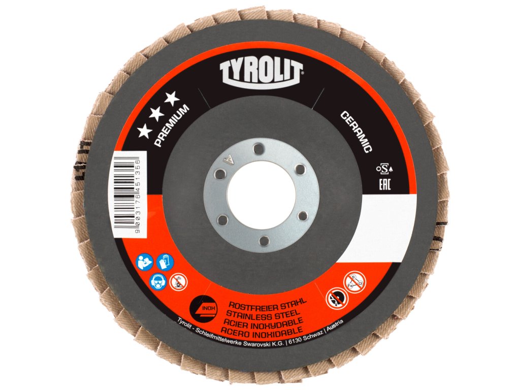Lamelový kotouč PREMIUM CERAMIC je obzvláště působivý na nerezové oceli, INOX. Díky použitému keramickému zrnu dosahuje mimořádně vysoké rychlosti odběru; zároveň speciální povrchová vrstva ("top size") zajišťuje studené broušení, a tím zabraňuje zbarvení obrobku. Tento nástroj je ideálním řešením pro náročné zakázky na broušení nerezové oceli, kde je třeba dosáhnout rovnoměrně kvalitního povrchu.
