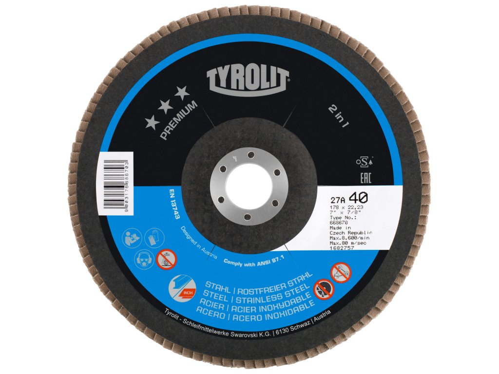Lamelový kotouč PREMIUM 2v1 je dokonalý vysoce výkonný univerzální brusný kotouč pro broušení oceli a nerezové oceli, INOX. Tento kotouč byl speciálně vyvinut pro rychlé a snadné broušení svárů. Bez ohledu na typ povrchu nebo hrany, kterou obrábíte, si můžete být jisti bezchybným výsledkem. Jeho chemická čistota navíc zajišťuje, že nedochází ke korozi, takže je ideální pro všechny vaše požadavky na nerezovou ocel, INOX. S lamelovým kotoučem PREMIUM 2v1 bude práce hotová rychleji a lépe.