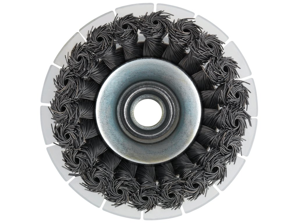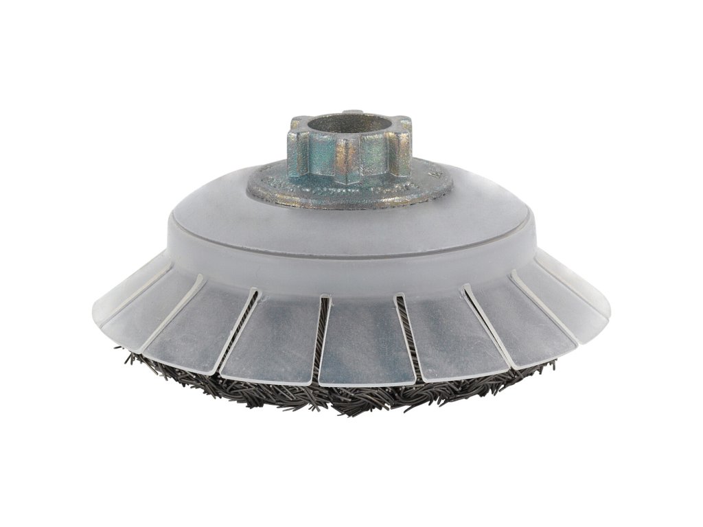Zúžené ocelové kartáče PREMIUM SHIELD pro úhlové brusky nabízejí díky průhledné ochraně maximální bezpečnost a výkonnost při zpracování nerezové oceli, INOX. Plastové klapky jsou navíc maximálně pružné a umožňují zejména dokonalé broušení hran a rohů. Tento nástroj je dokonalým řešením pro těžko přístupná místa. Složení drátu z vysoce kvalitní nerezové oceli, INOX, zabraňuje korozi na obrobku. Provedení s zatočeným lanem (DW) je předurčeno pro měkké, citlivé materiály a lehké nečistoty.