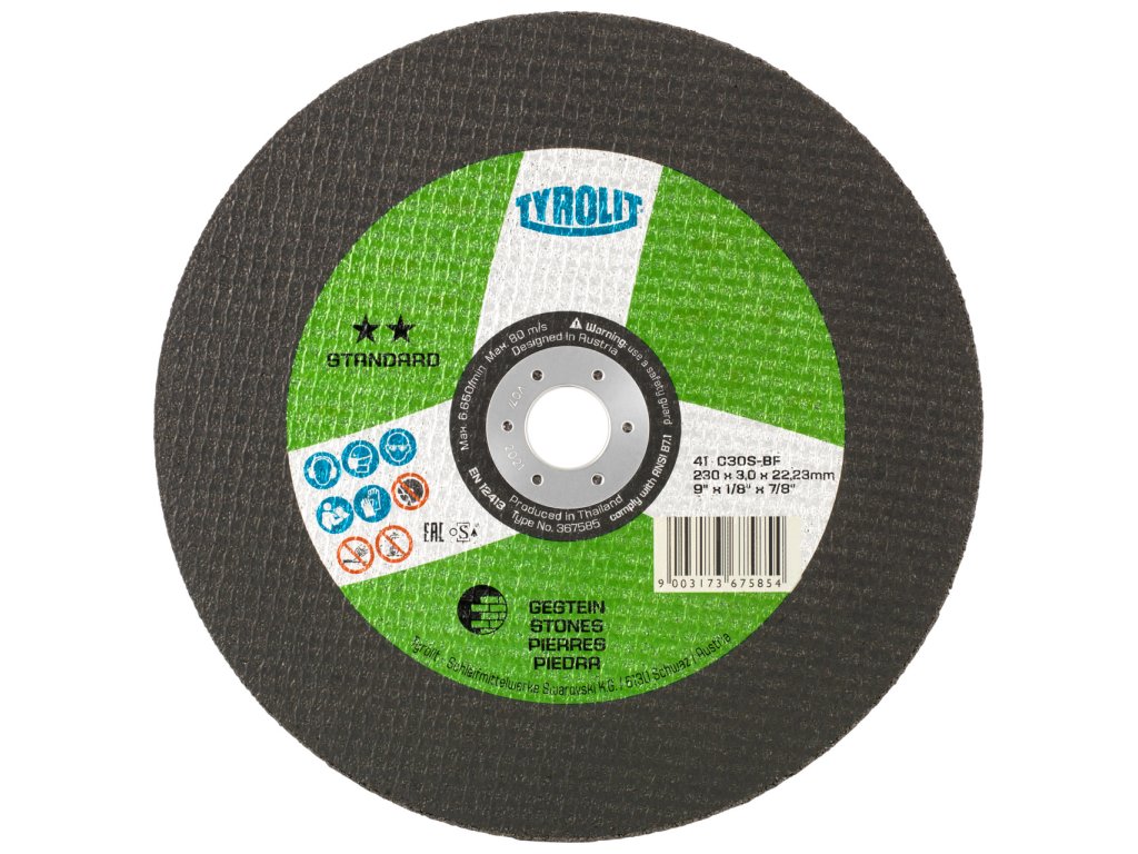 S tímto rozbrušovacím kotoučem STANDARD můžete snadno a bez většího silového namáhání řezat nejrůznější druhy kameniva - dlaždice, keramiku, cihly a někdy i beton. Výsledkem jsou trvale čisté řezné hrany. Díky použitému zrnu karbidu křemíku si můžete být jisti vysokou trvanlivostí a stabilitou při řezání.Dodatočné parametre