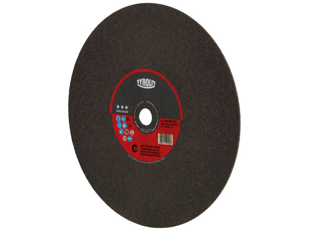 Rozbrušovací kotouč PREMIUM pro nerezovou ocel, INOX zaručuje nejbezpečnější řezání jakýchkoli obrobků na stacionárních strojích - bez ohledu na průměr. Tento výrobek je určen pro obrábění široké škály kvalit nerezové oceli a je ideální pro stacionární rozbrušování obrobků s velkými průřezy, plných materiálů a profilů. S tímto výrobkem máte zaručenou maximální trvanlivost a jedinečnou řezivost, a to i díky našemu speciálnímu procesu lisování Tyrolit a drsným čelním plochám rozbrušovacího kotouče. Tím se snižuje boční tření a dehtování obrobku je minulostí. Vysoká chemická čistota výrobku rovněž zabraňuje korozi, takže je tento rozbrušovací kotouč vaším dokonalým partnerem pro obrábění nerezové oceli, INOX.Dodatočné parametre