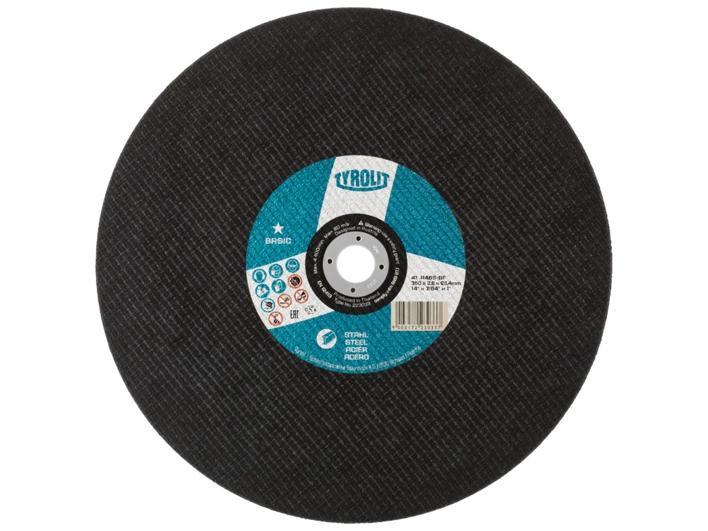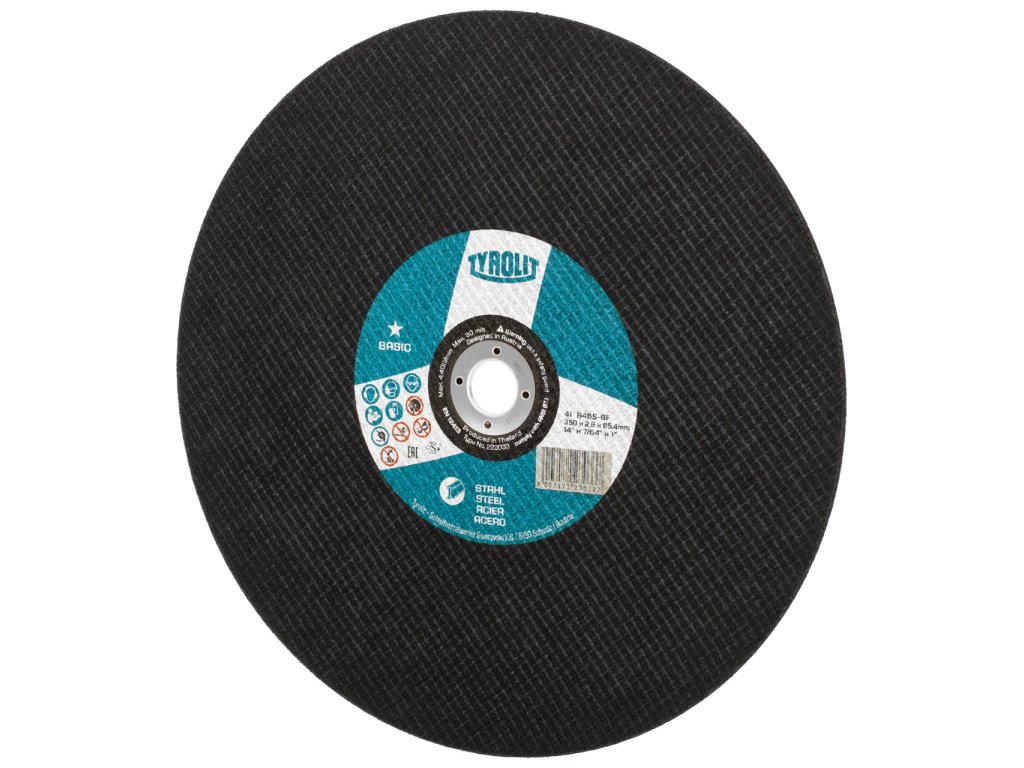 Rozbrušovací kotouč BASIC pro ocel zaručuje nejbezpečnější řezání jakýchkoli obrobků na stacionárních strojích - bez ohledu na průměr. Tento výrobek je určen pro obrábění širokého výrobního sortimentu oceli a je vhodný pro stacionární rozbrušování obrobků s velkými průřezy, plných materiálů a profilů. U tohoto výrobku jsou zaručeny vysoké trvanlivosti a řezivosti, a to i díky našemu speciálnímu procesu lisování Tyrolit a hrubým čelním plochám rozbrušovacího kotouče. Tím se snižuje boční tření a dehtování obrobku je minulostí.Dodatočné parametre