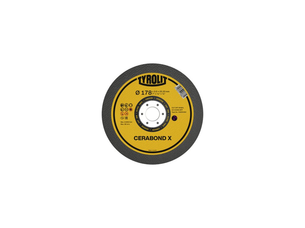 Rozbrušovací kotouč PREMIUM CERABOND X je spolehlivým partnerem pro řezání velmi tvrdých materiálů a obrobků s velkými průřezy. Kombinace jedinečného pojivového systému se samoostřicí keramickou zrnitostí dosahuje mimořádně vysoké řezivosti a vysoké trvanlivosti a zároveň zabraňuje předčasnému vylamování zrn. S nástroji CERABOND X jste tak ideálně vybaveni pro každou výzvu.Dodatočné parametre