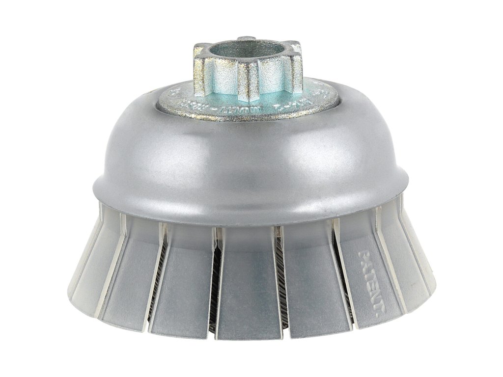 Hrncové kartáče PREMIUM SHIELD pro úhlové brusky nabízejí díky průhledné ochraně maximální bezpečnost a výkonnost při obrábění oceli. Složení z mosazného drátu dlouhodobě zabraňuje korozi. Tento nástroj je k dispozici v různých provedeních. Zatímco provedení s uzlovým drátem (DW) je předurčeno pro měkké, citlivé materiály a lehké nečistoty, drátěné kartáče s uzlovým drátem (DZ) jsou vhodné pro náročnou práci, silné znečištění a pro odstraňování barev a laků.